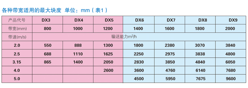 (1)DX型鋼繩芯帶式輸送機(jī)通用系列設計(jì),屬于高強度帶式輸送機(jī),适用于散裝物料大(dà)運量和長距離(lí)的輸送。